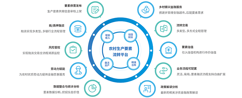 2、高效撮合要素融资:构建面向乡村振兴的普惠金融产品超市,实现要素和融资产品精准匹配。